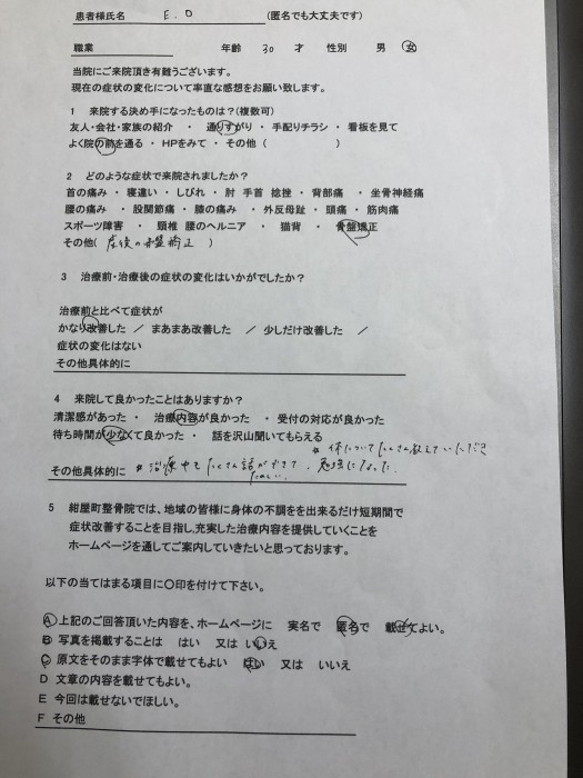 産後骨盤矯正のアンケートを頂きました😃